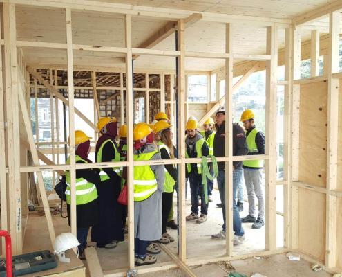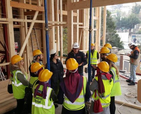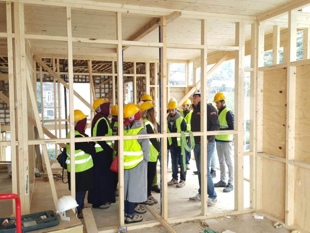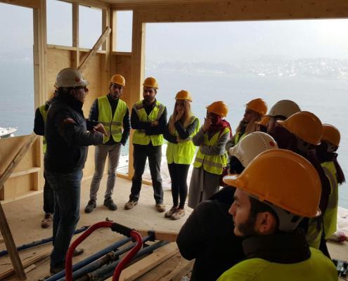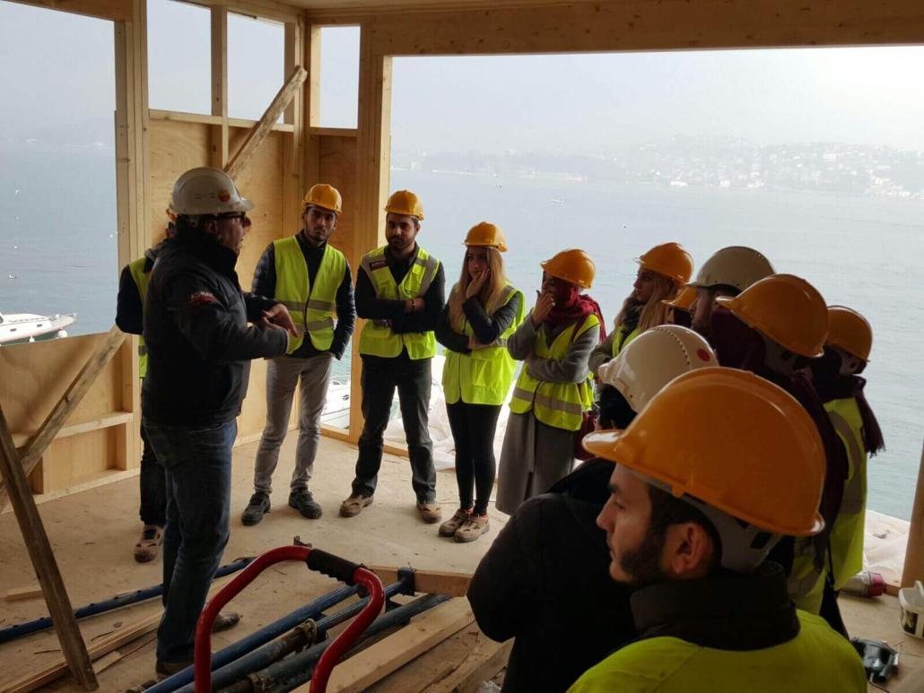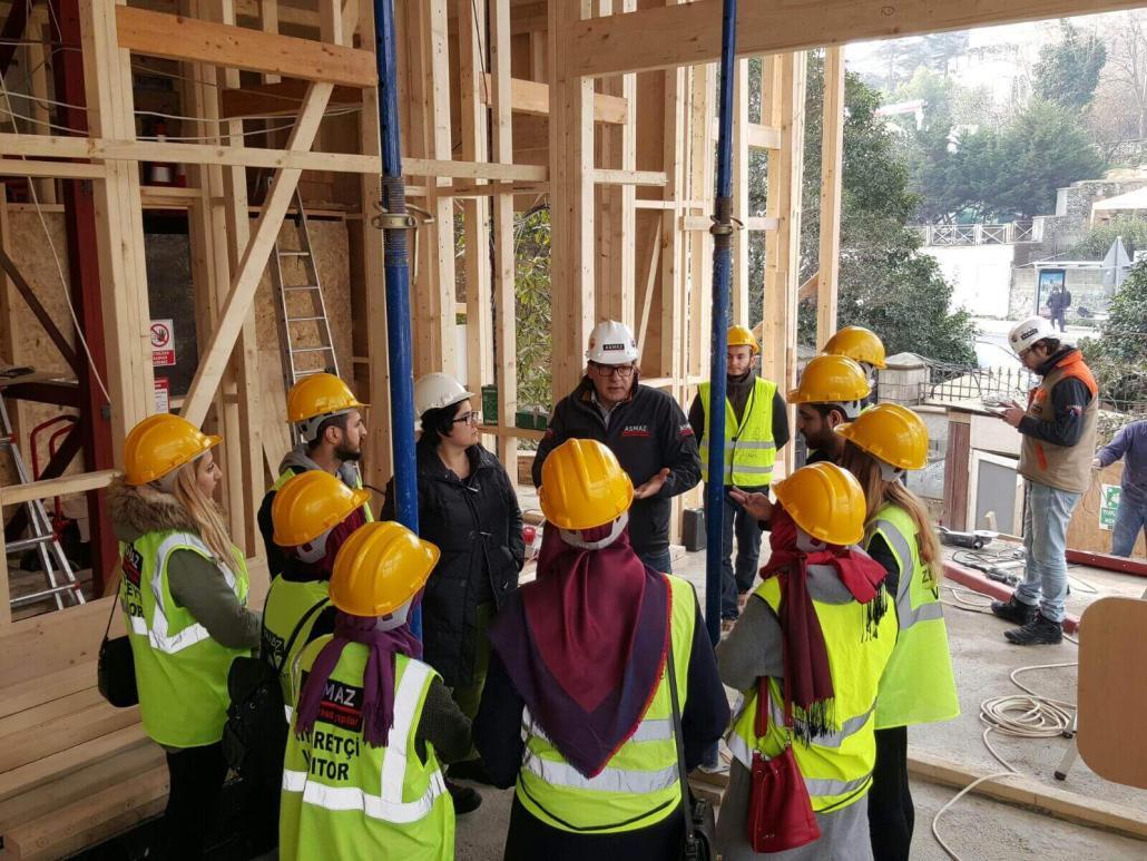 İstanbul Büyükşehir Belediyesi KUDEB Ahşap Eğitim Atölyesi öğrencileri, hocaları Orman Endüstri Yüksek Mühendisi Demet Sürücü ile birlikte, ASMAZ Ahşap Karkas Yapılar’ın Yeniköy’deki Kalkavan Yalısı Şantiyesi’ni ziyaret etti. Öğrencilere ev sahipliğini Mehmet Akif Asmaz ve projeden sorumlu İnşaat Teknikeri Emin Atak yaptı. Ziyarette ahşap karkas restorasyonu yapılan yalının proje montaj uygulamaları ile ilgili detaylı teknik bilgi verildi.